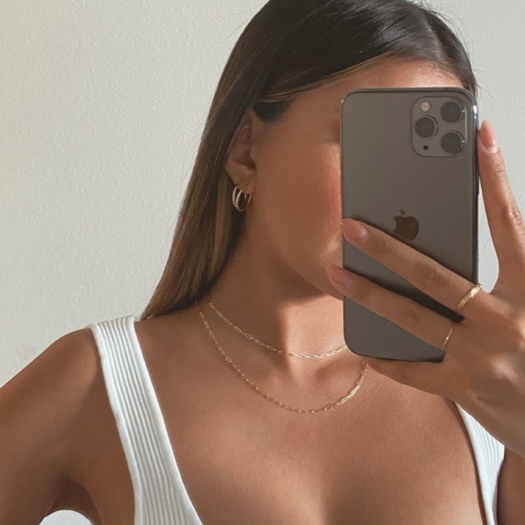 die perfekte zierliche Halskette aus massivem 14-karätigem Material. 18"-Kette aus massivem 14-karätigem Gold. Hergestellt aus recyceltem Gold in den USA.