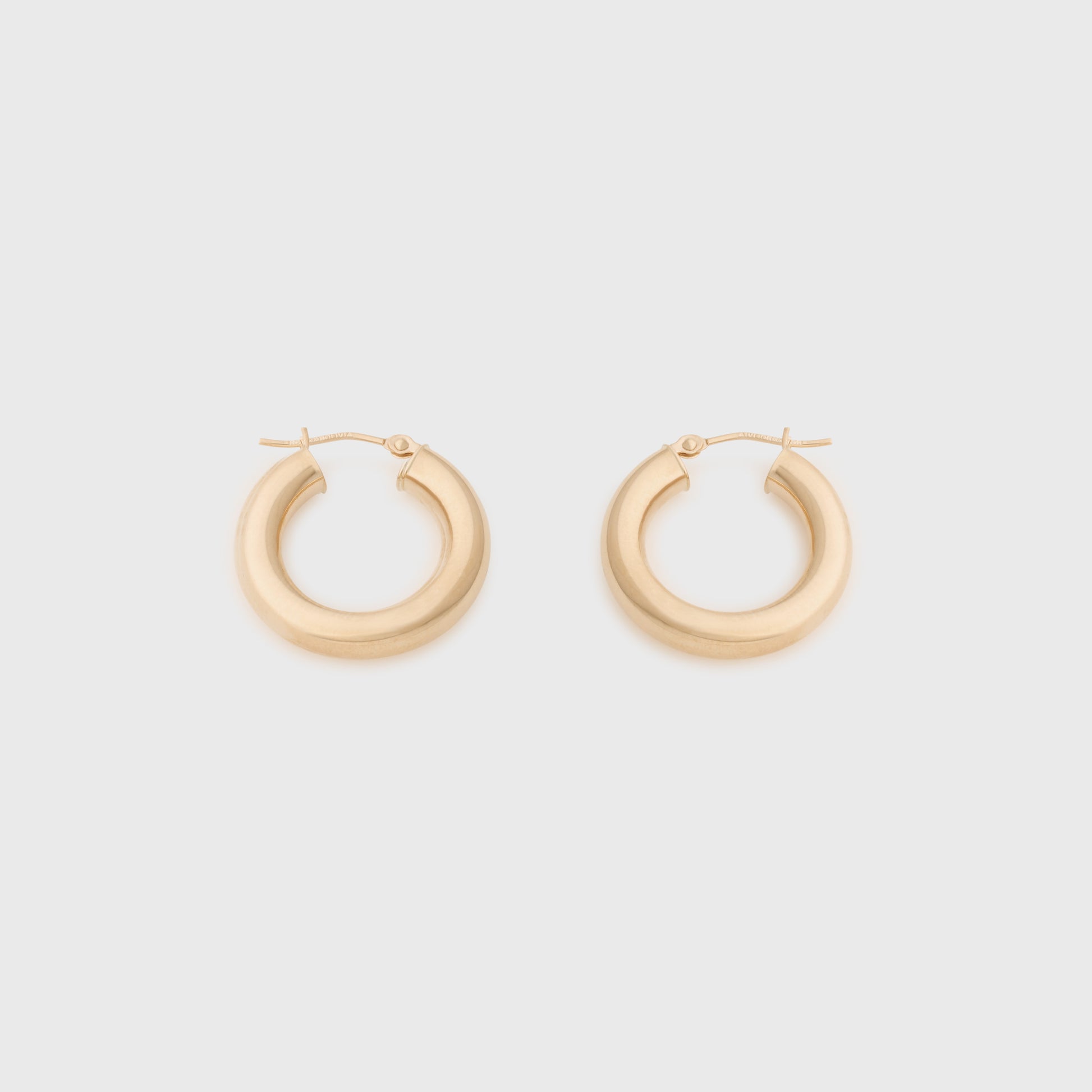 die perfekten klobigen, aber leichten Creolen aus massivem Gold. massives 14-karätiges Gold, 4 mm breit, 20 mm hoch. Hergestellt aus recyceltem Gold. Bitte beachten Sie, dass Ohrringe vom Umtausch ausgeschlossen sind.