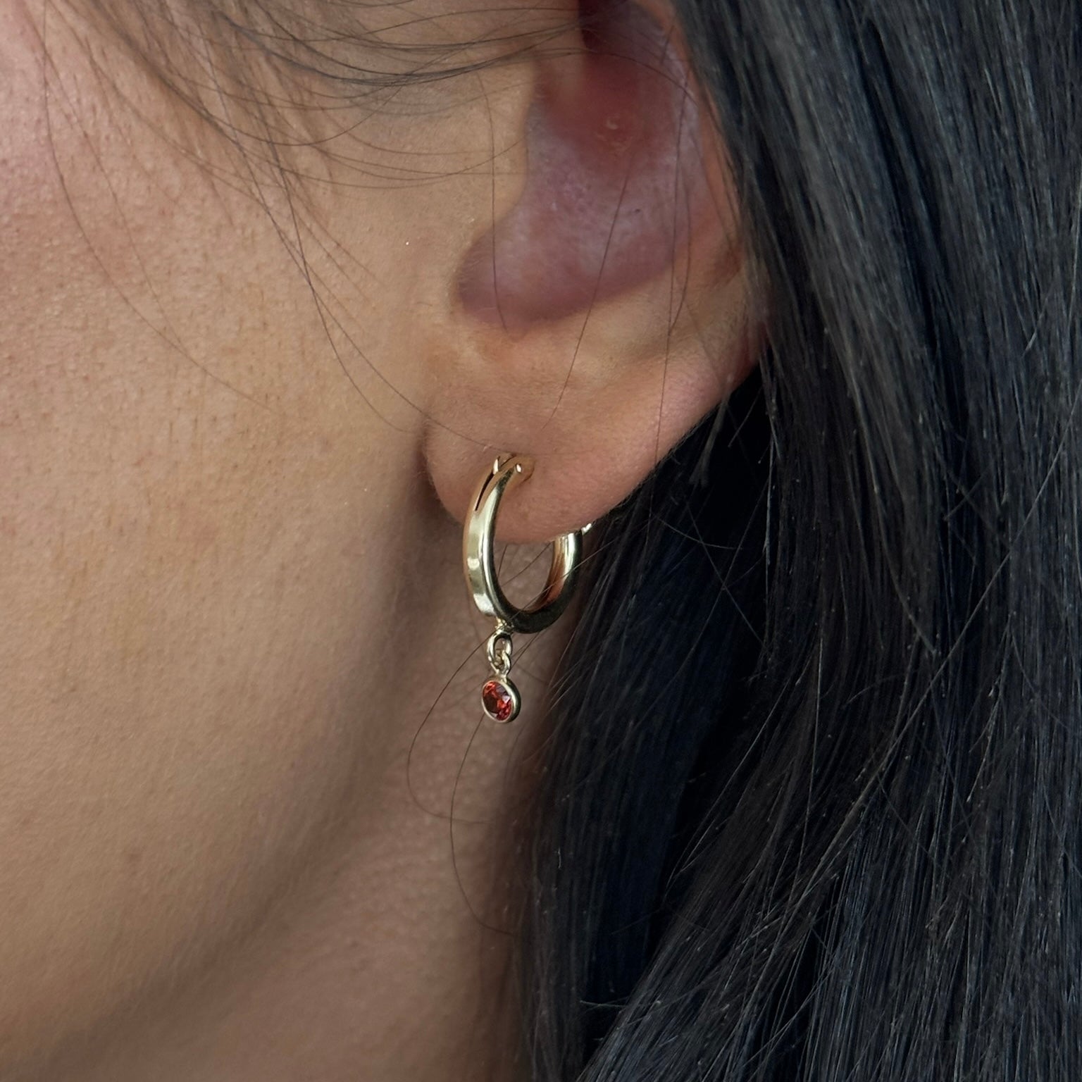 Ihre individuellen Ohrsüßigkeiten. 13 mm große, mit 14 Karat Gold gefüllte, leichte Creolen mit CZ-Geburtssteinen. Hergestellt aus recycelten Metallen. Bitte beachten Sie, dass Ohrringe vom Umtausch ausgeschlossen sind.
