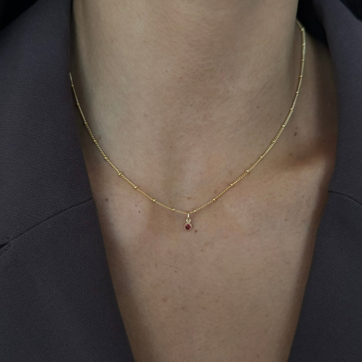 Ihre süßeste individuelle, zierliche Schicht. 16" 14k goldgefüllte Kette mit CZ-Geburtssteinen. Hergestellt aus recycelten Metallen.
