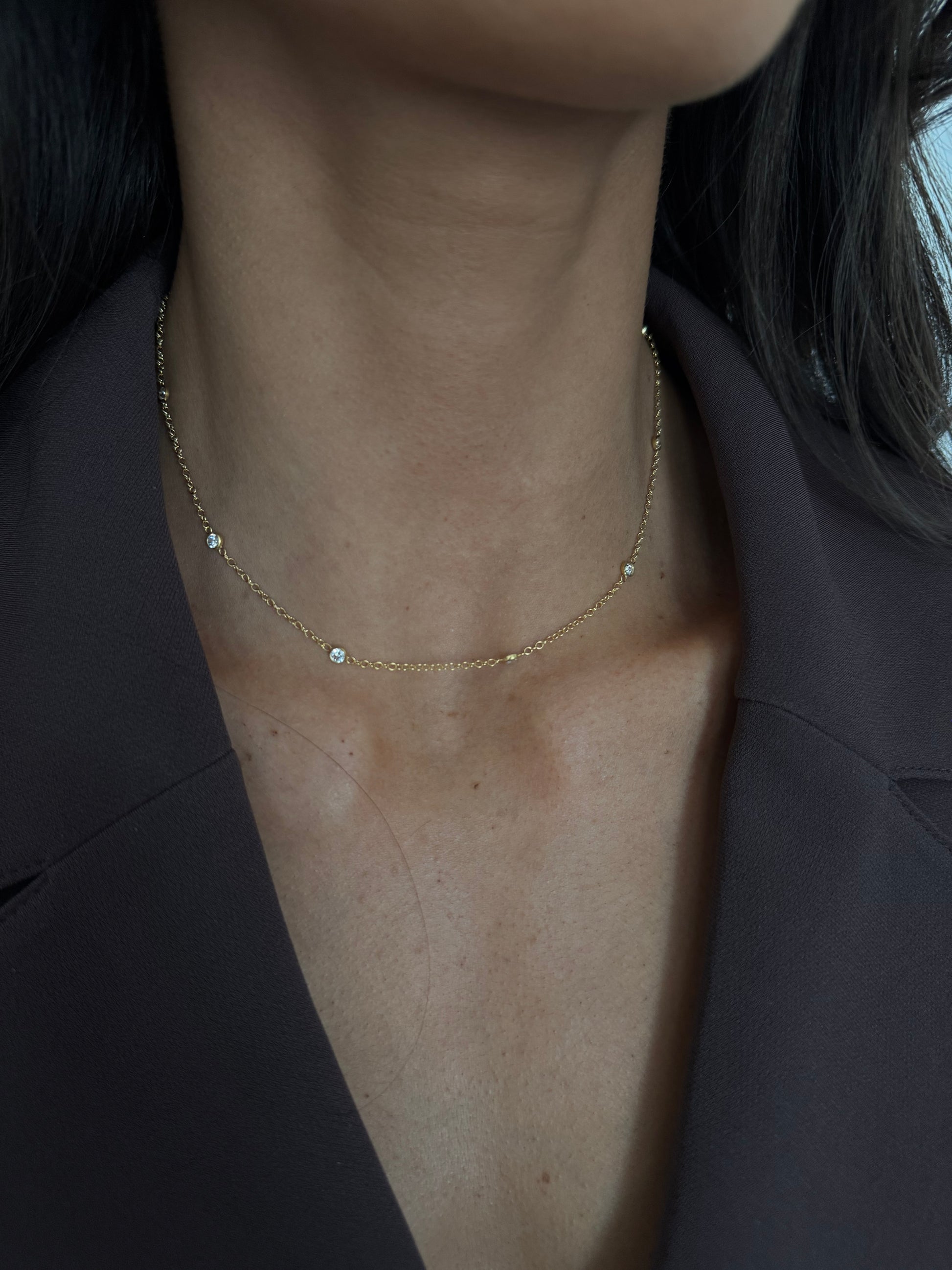 14k gold filled necklace with bezel set cz stones. available in choker (15") length or necklace (18") length. handmade with recycled metals in the usa.
