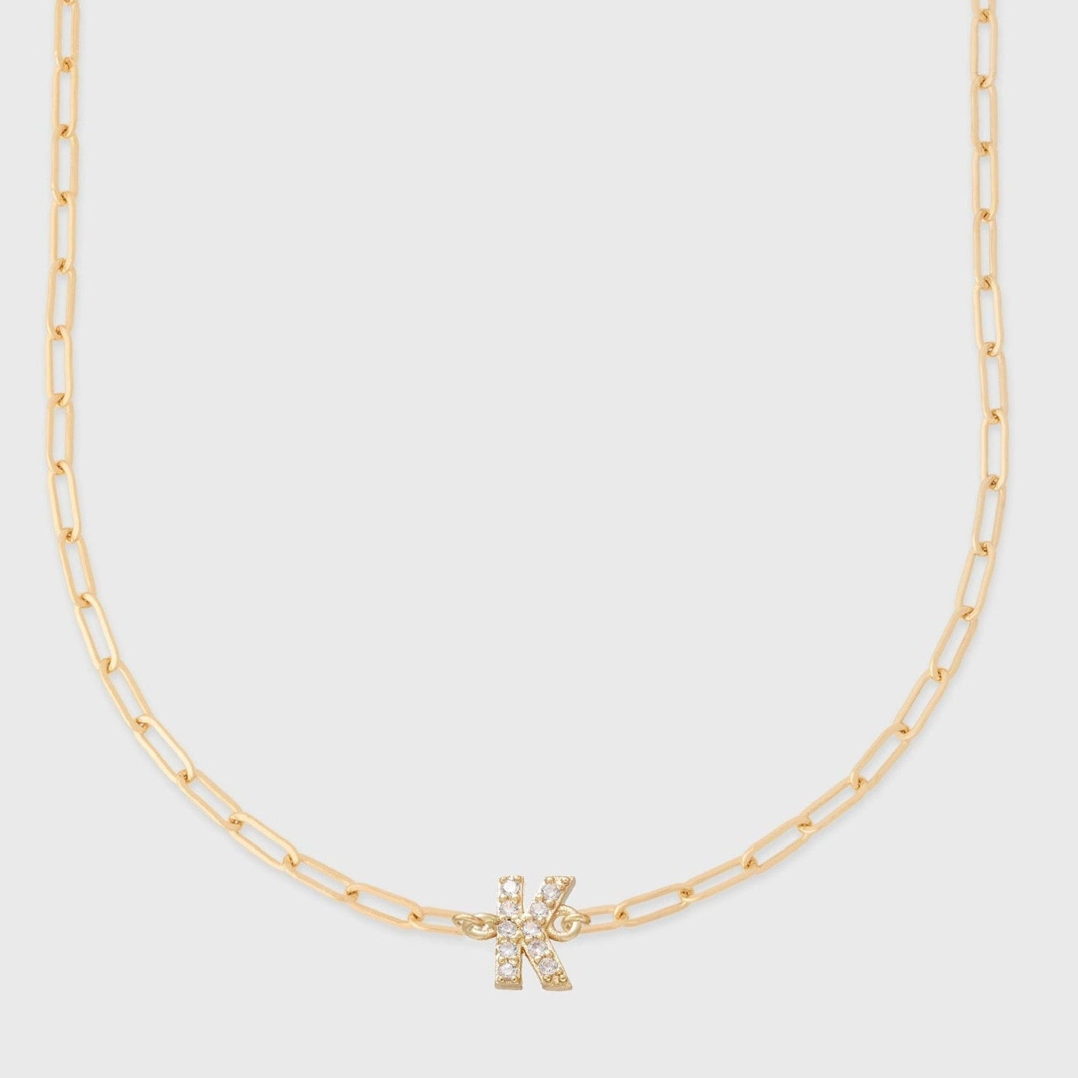 the cutest custom necklace you ever did see. 16" 14k gold filled necklace with a custom pavé initial made from gold PVD stainless steel. handmade with recycled metals in the usa.