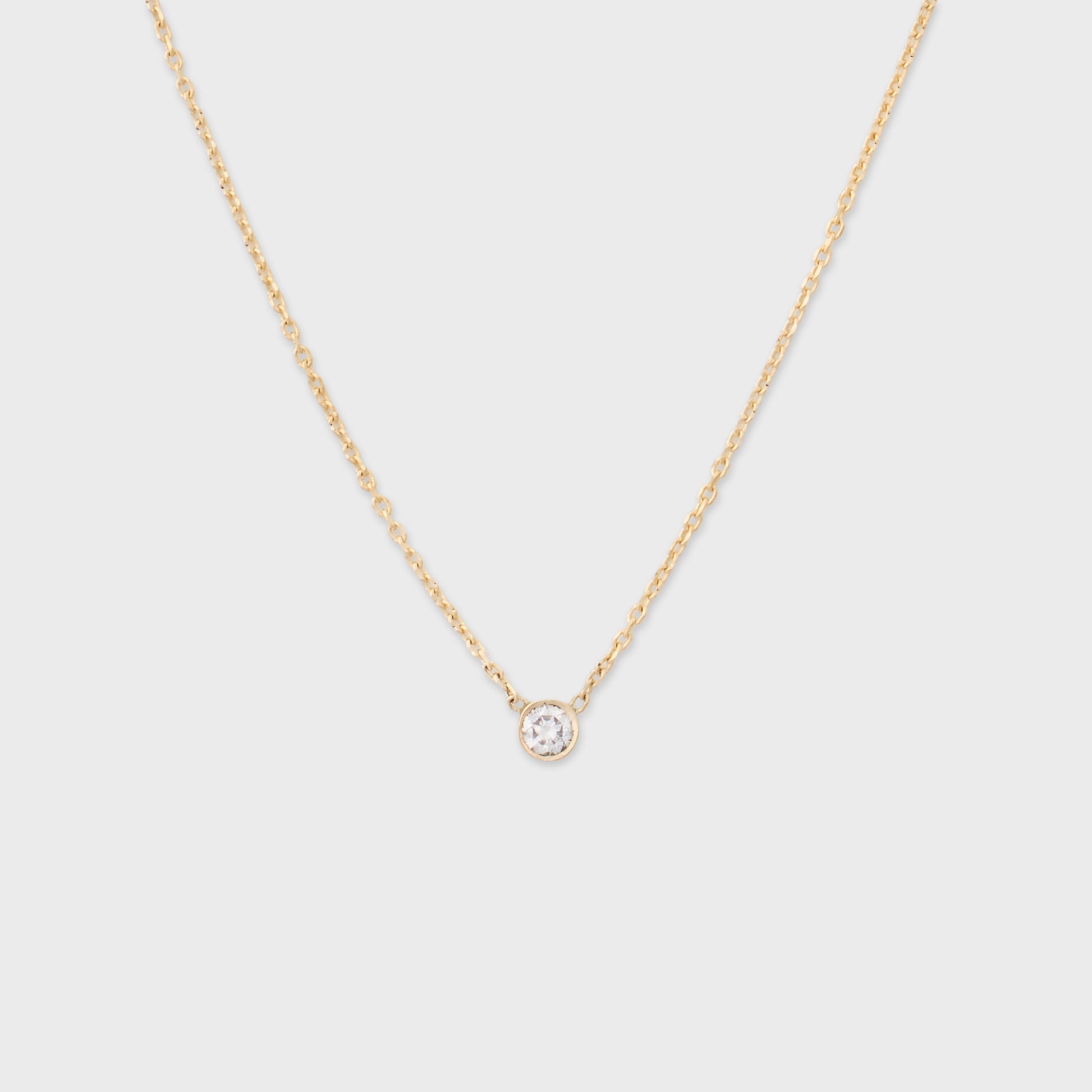 Collier ajustable en or jaune massif 14 carats de 16 à 18 po avec un diamant cultivé en laboratoire. fabriqué à la main avec des métaux recyclés aux États-Unis.
