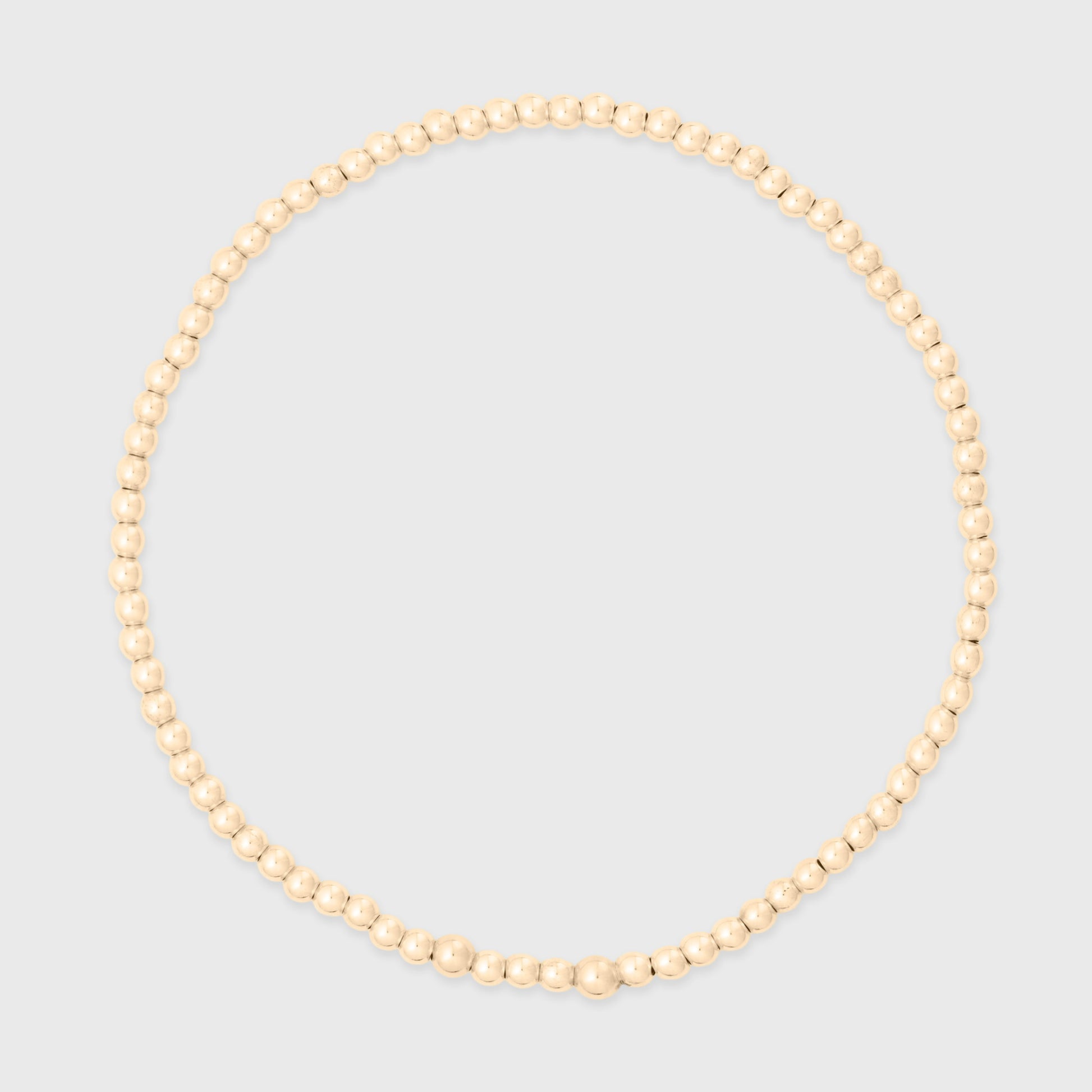 nothing says dainty and chic like our tiniest bead bracelet in the line up. 14k gold filled 2.5mm beads on a stretch chord. handmade with recycled metals in the usa.