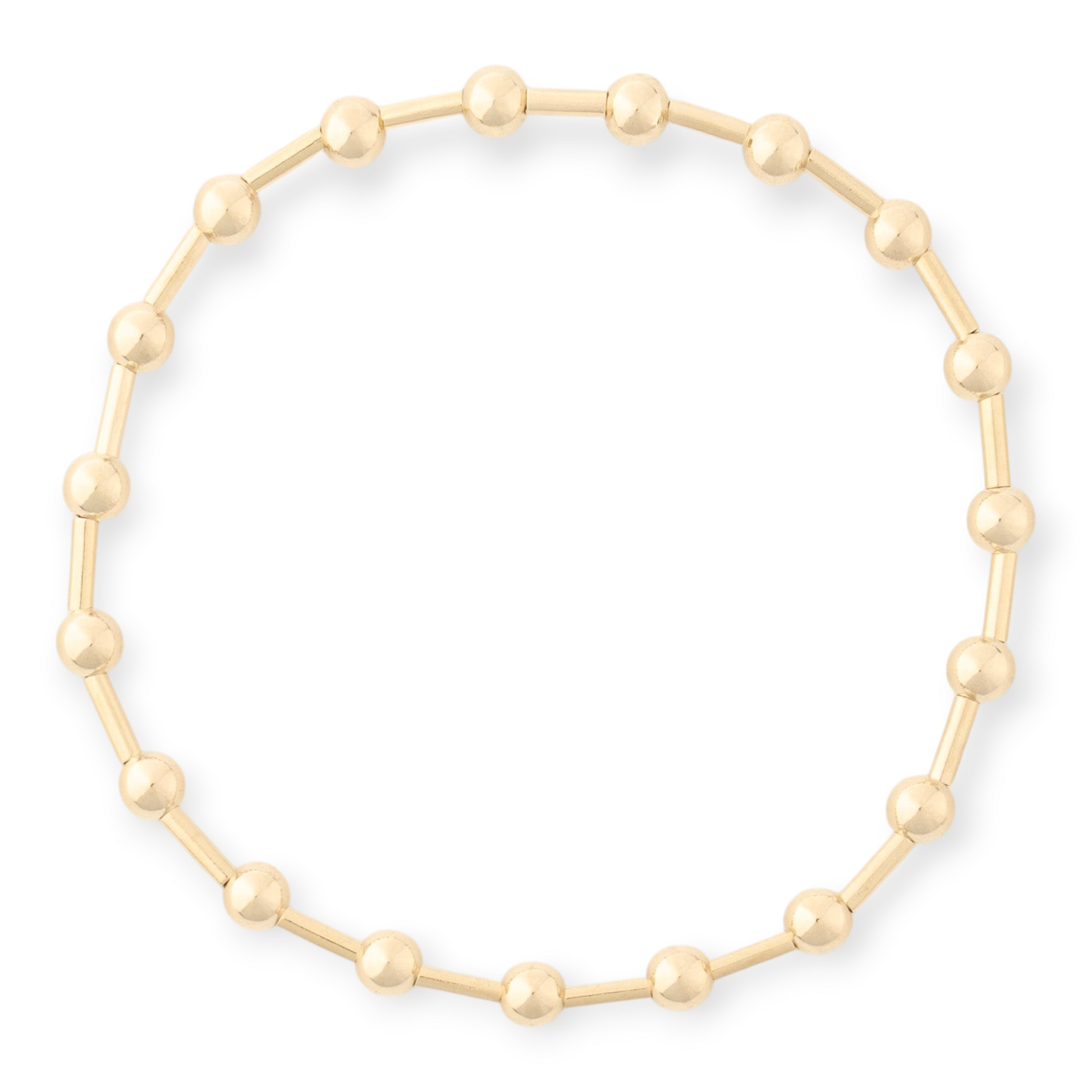 this bracelet features gorgeous 4mm 14k gold filled beads connected by 14k gold filled bars on stretch cord. handmade with recycled metals in the usa.