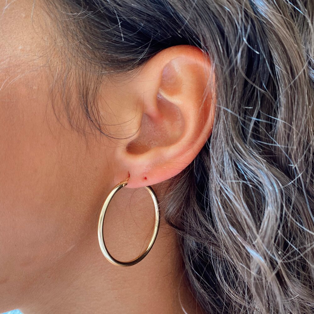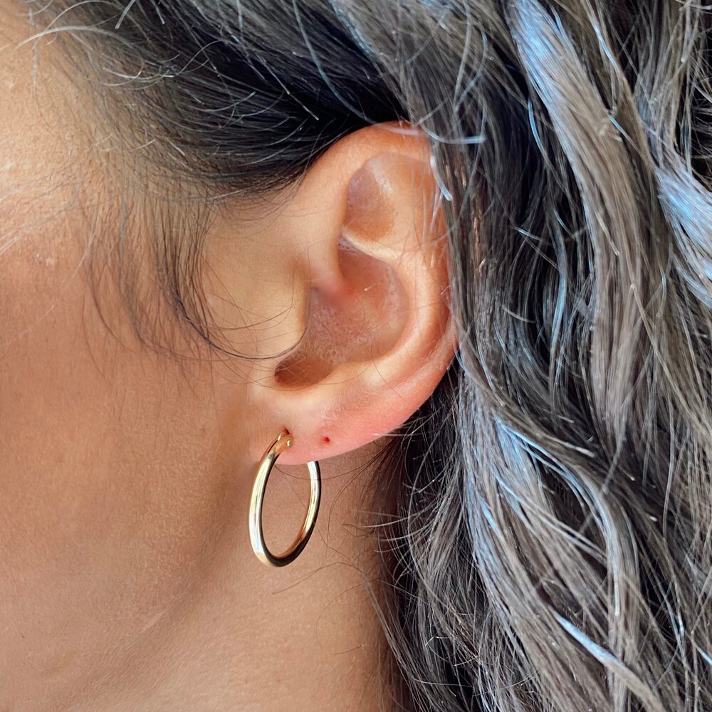 your classic, everyday hoops. 14k gold filled light weight hoops with 4 sizes available: 2mm x 13mm/15mm/22mm/34mm. made with recycled metals.please note earrings are not eligible for returns.
