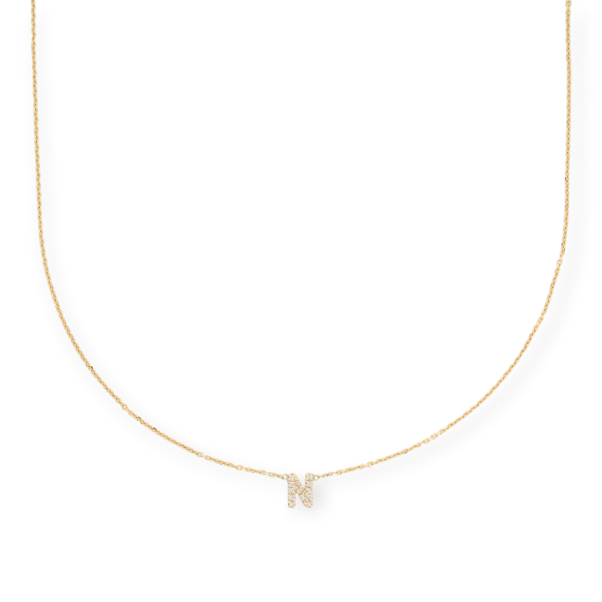 the perfect forever piece, or gift. 16", 18", or 20" solid 14k gold initial necklaces with a gorgeous initial set with lab grown diamonds. handmade to order with recycled metals and lab grown diamonds in the usa. 16" chain pictured. this piece is made to order, takes 2-3 weeks in production, and is not eligible for returns.