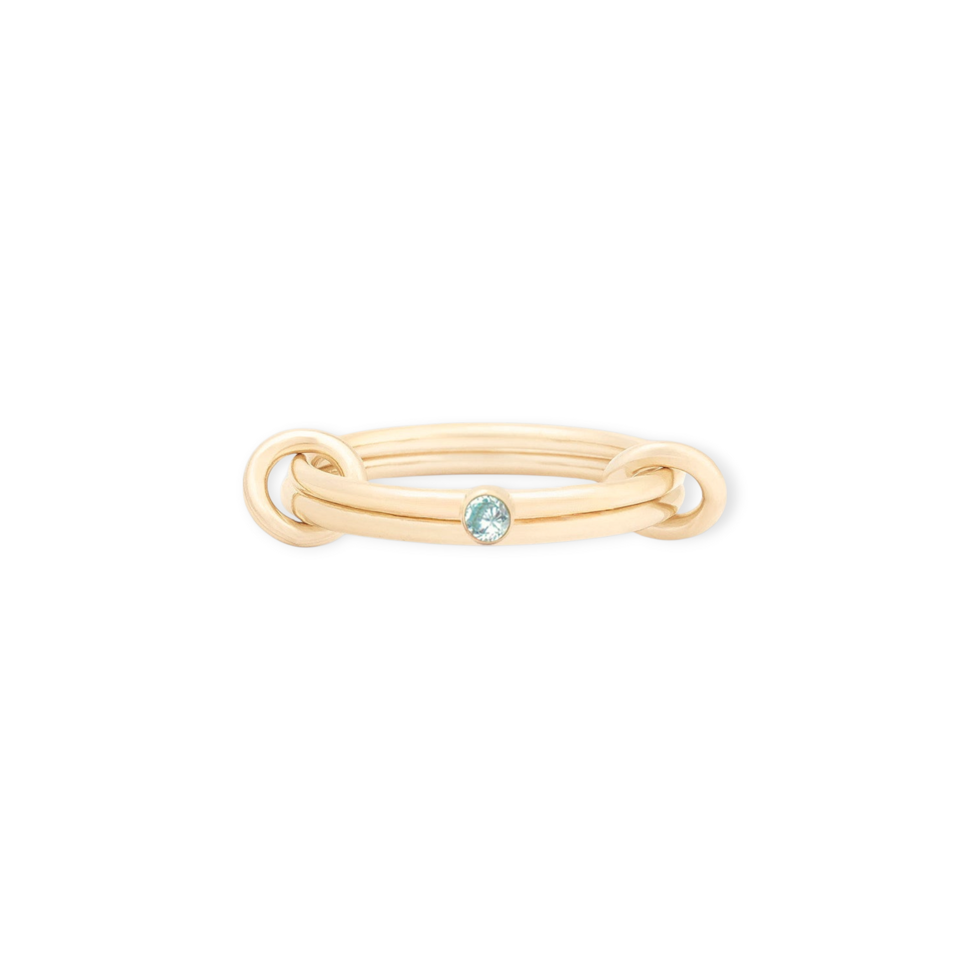 create a dainty ring stack with this double linked ring. the set comes with a custom birthstone ring and a plain stacking ring, linked together with two thick rings, all 14k gold filled materials. please note you maybe want to size up due to the additional volume the linking rings add. handmade with recycled metals in the usa.