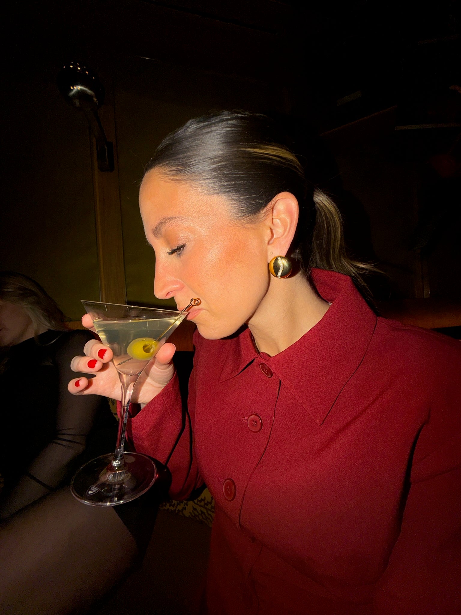 these statement earrings make the most fun icey moment. gold PVD stainless steel button earrings with a snake of cz stones set down the middle. please note per our return policy, earrings are not eligible for returns due to sanitary purposes.